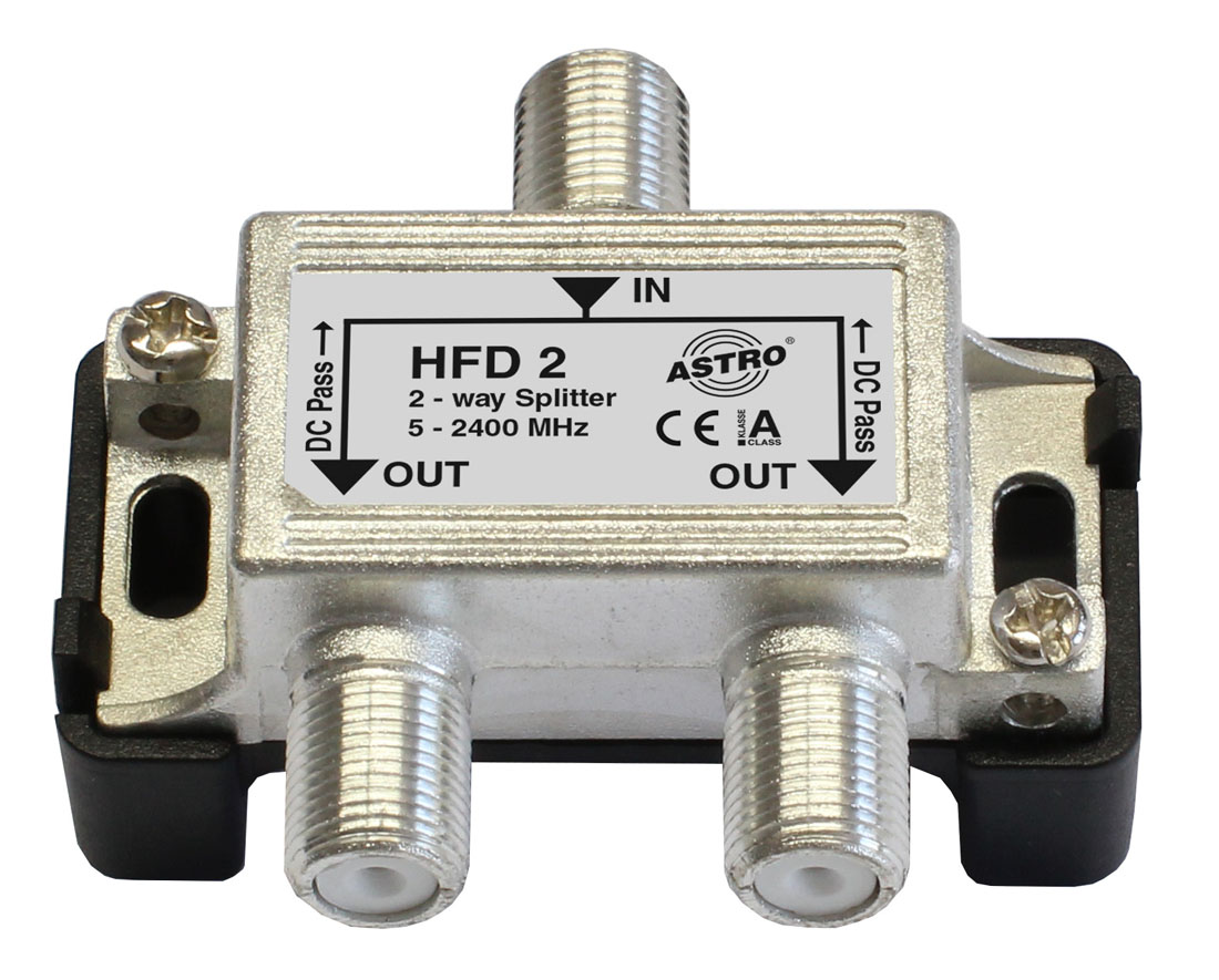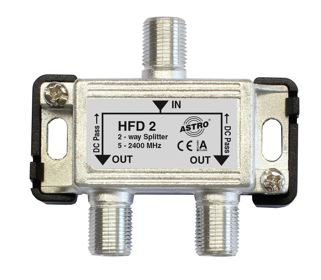 Hochwertiger BK- und SAT-Verteiler bis 2400 MHz, mit DC-Durchgang zu allen Anschlüssen, Schirmungsmaß Klasse A, Verteildämpfung 4–8 dB.
