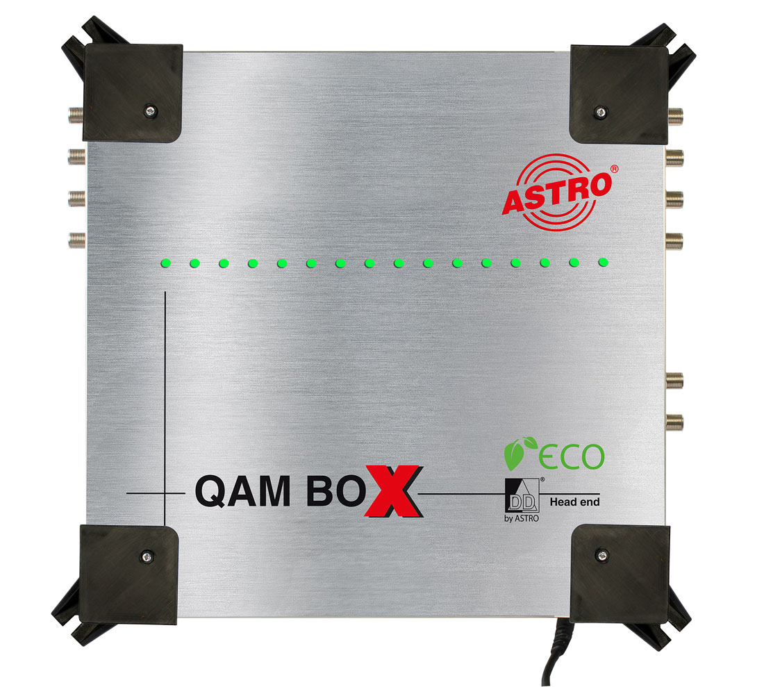 QAM-Umsetzer für 4 SAT-Ebenen mit 16 DVB-S2 QAM-Kanälen, LCN, NIT, lizenzierbarem Service-Filter, Webkonfiguration und kompakter, stromsparender Bauweise.