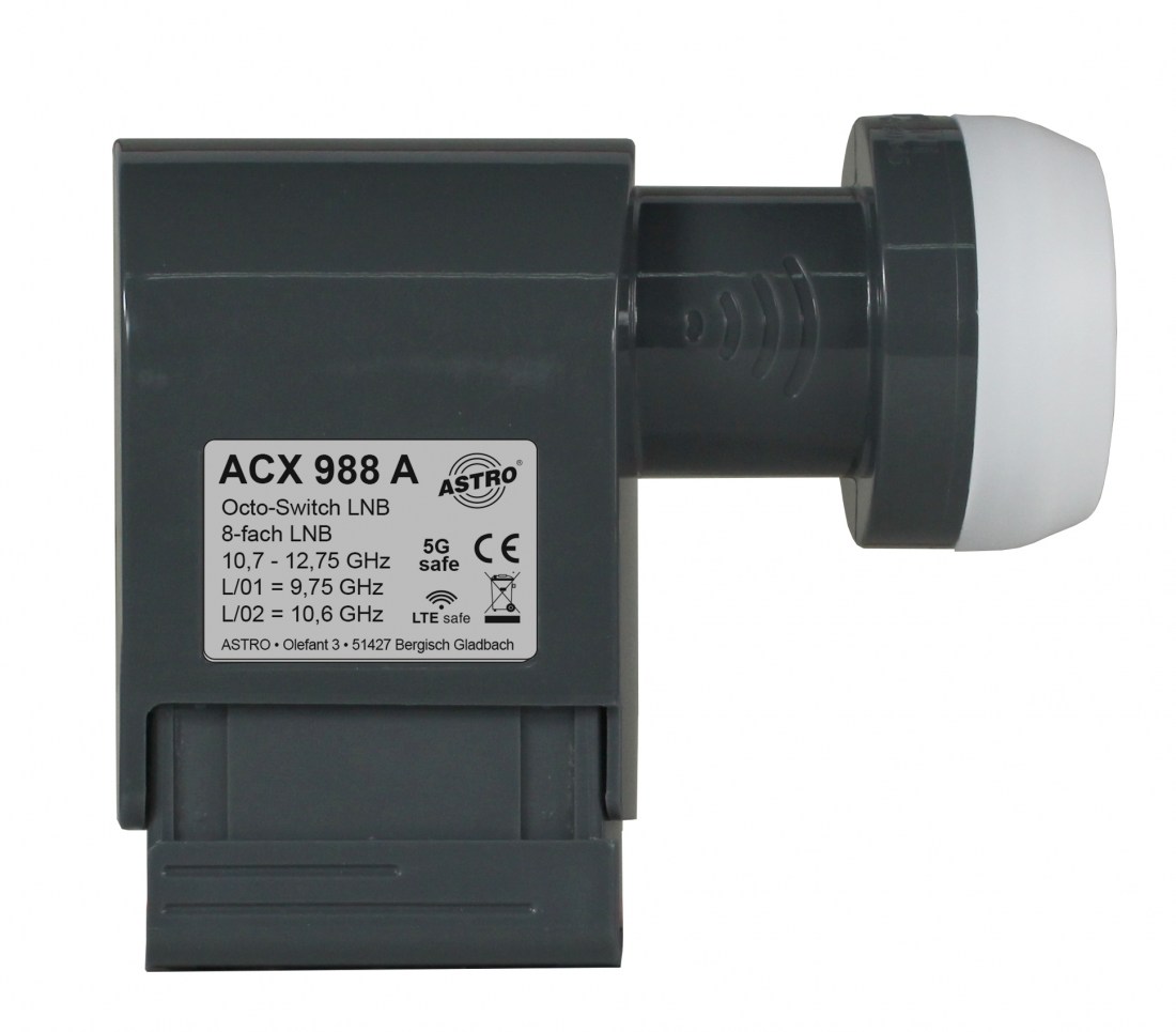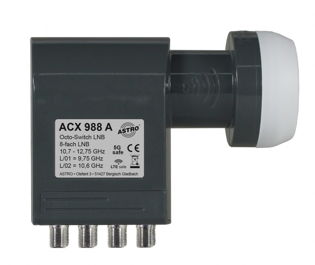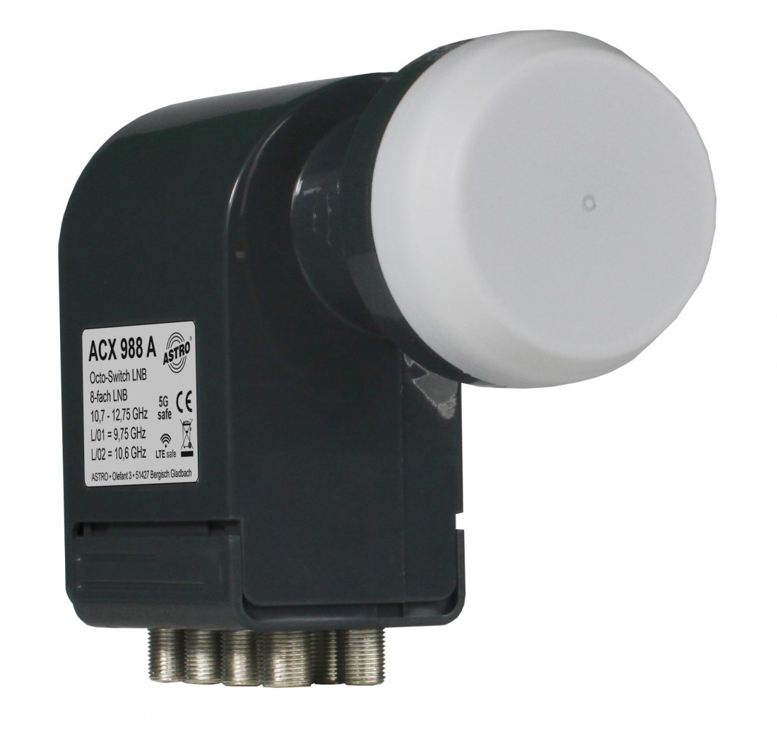 Octo-LNB für 8 Teilnehmer, wetterfest, 5G/LTE-sicher und stromsparend.