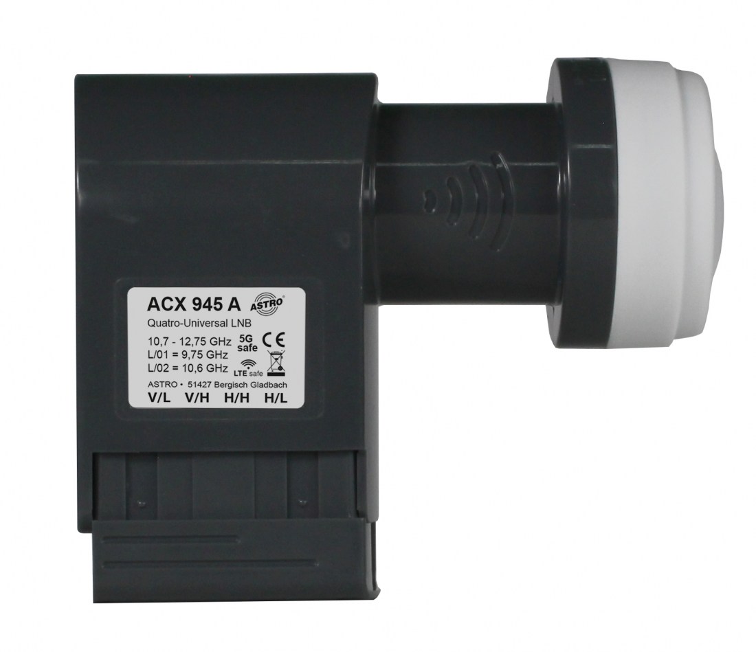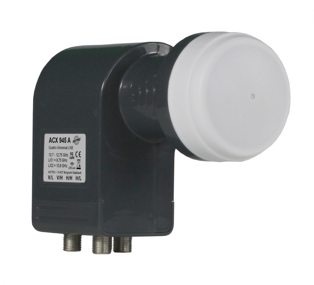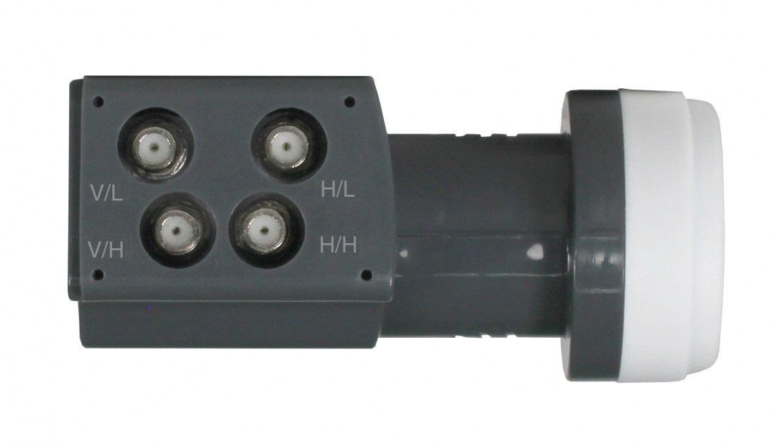 Quattro-LNB für Multischalter/Kopfstellen, wetterfest, multifeedtauglich, 5G/LTE-sicher.