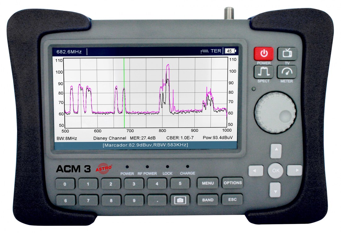 Kompaktes Messgerät für DVB-S(2), C, T(2) mit Spektrumanalysator, 7″-Display, HEVC-Unterstützung und 6 h Akkulaufzeit.